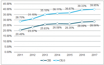 2011-2017年造紙行業(yè)集中度