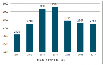 2011-2017年規(guī)模以上企業(yè)數(shù)(家)