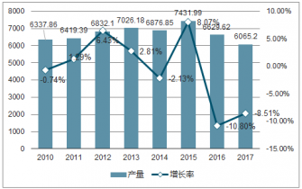 2010-2017 年中國(guó)化肥行業(yè)產(chǎn)量及增長(zhǎng)率