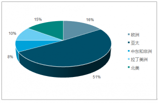 2017年全球各地區(qū)涂料產(chǎn)量占比圖