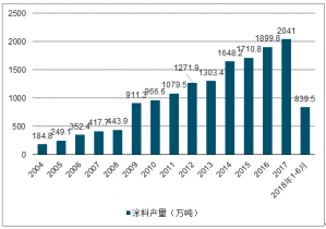 2017年全球涂料產(chǎn)量7144萬噸,產(chǎn)值約1929億美元。國產(chǎn)涂料在2017年產(chǎn)量達(dá)2036萬噸,產(chǎn)值約640億美元,規(guī)模接近全球的三分之一。