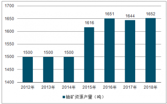 2012-2019年我國(guó)鈾礦資源產(chǎn)量