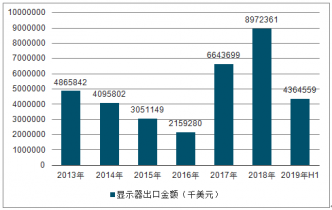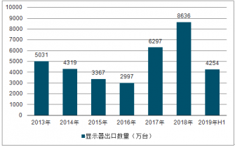 2013-2019H1中國(guó)顯示器出口數(shù)量及出口金額統(tǒng)計(jì)表