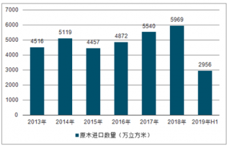 2013-2019H1中國原木進(jìn)口數(shù)量趨勢圖