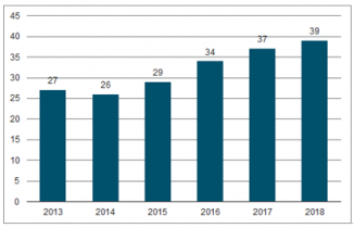 2013-2018年中國晾衣架行業(yè)規(guī)模以上企業(yè)數(shù)量