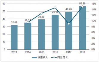 2013-2018年中國晾衣架行業(yè)規(guī)模以上企業(yè)銷售收入及增長
