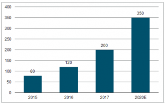 2015年,中國晾衣架行業(yè)終端市場規(guī)模約為80億元,2016年市場規(guī)模突破100億元,2017年達(dá)到200億元。按照這個(gè)增長速度,預(yù)計(jì)到2020年,整個(gè)行業(yè)將形成350億的終端市場規(guī)模。