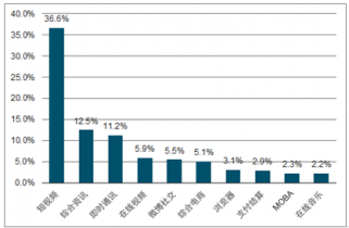 圖表7:2015-2019年中國移動(dòng)互聯(lián)網(wǎng)細(xì)分行業(yè)結(jié)構(gòu)占比(單位:%)