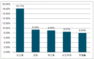 從區(qū)域分布來看,2019年,百強(qiáng)企業(yè)53.12%的管理面積位于五大城市群,其中,長三角、成渝、珠三角、長江中游和京津冀城市群的分布比例分別為18.17%、9.34%、9.06%、8.51%和8.04%。