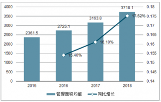 2015-2018年中國物業(yè)服務(wù)百強(qiáng)企業(yè)管理面積均值及增長