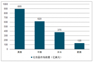 2019年各國(guó)化妝品市場(chǎng)規(guī)模(億美元)