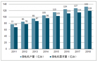 2011年~2019年中國微電機供需走勢