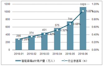 截至2018年上半年,我國(guó)智能音箱附帶的相關(guān)應(yīng)用控制軟件的用戶量達(dá)到1121萬(wàn)人,規(guī)模不斷攀升,智能音箱行業(yè)滲透率不斷擴(kuò)大。