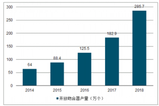 2014-2019年我國開放吻合器產(chǎn)量(萬個)