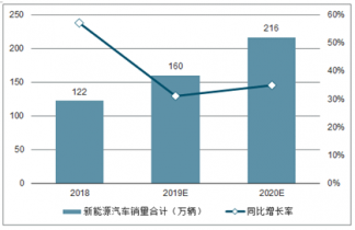 2018-2020年新能源汽車產(chǎn)銷有望高增長。根據(jù)我們的測算,2018-2020年國內(nèi)新能源汽車銷量分別為122、160、216萬輛,同比分別增長57%、31%、35%。