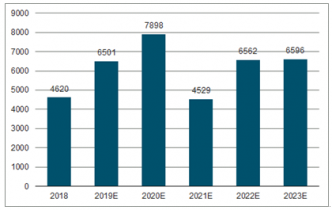 根據“十三五”規劃綱要的內容,預計2020年城市軌道交通營業里程將超過6600公里,新建里程達到3000公里,預計地鐵里程達到5318公里,按照我國城市軌道交通車輛保有量密度為11輛/公里來保守估計,“十三五”期間我國城軌建設帶來的地鐵車輛需求增加3萬輛,年均增加6000輛。而按照一輛車搭配一套車載PIS系統推測,2021-2027年,地鐵PIS系統市場需求每年可保持在4500套以上;到2023年,地鐵PIS系統市場需求將達到6596套。
