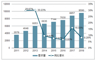 2011-2019年我國光纖預制棒行業(yè)需求量及增長