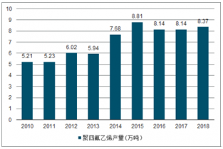 2010-2019年我國聚四氟乙烯產(chǎn)量走勢圖