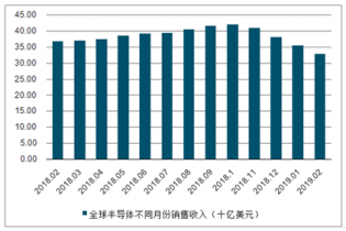 2018-2019年全球半導體不同月份銷售收入(十億美元)