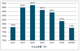 2013-2019年上半年我國(guó)小額貸款行業(yè)企業(yè)數(shù)量