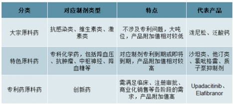 原料藥產(chǎn)品在我國通常分為大宗原料藥、特色原料藥和專利藥原料藥三大類。早年我國原料藥企業(yè)以產(chǎn)品附加值相對較低的大宗原料藥生產(chǎn)為主,受環(huán)保、成本等因素影響,近年來產(chǎn)品附加值較高的特色原料藥正加速向我國產(chǎn)業(yè)轉(zhuǎn)移,成為未來行業(yè)內(nèi)發(fā)展?jié)摿ψ畲蟮念I域之一。