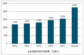 2013-2021年全球原料藥市場規(guī)模統(tǒng)計情況及預測