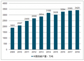 2009-2019年中國燒堿行業(yè)產(chǎn)量情況