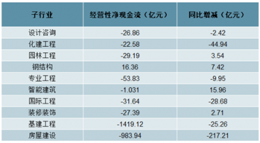 建筑子行業(yè) 2019 年上半年經(jīng)營性現(xiàn)金流情況