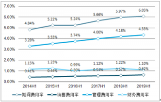 2019 年上半年期間費用率有所提升