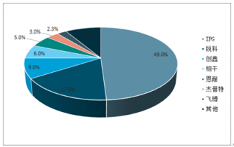 2019年中國(guó)激光器市場(chǎng)競(jìng)爭(zhēng)格局(單位:%)