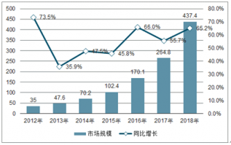 2012-2018年中國公有云市場規(guī)模及增長