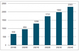 在未來幾年內(nèi),隨著5G商業(yè)化以及智能化產(chǎn)業(yè)需求的大規(guī)模上漲,預計我國的公有云市場規(guī)模將持續(xù)高速增長。2019-2024年,我國公有云市場仍處于快速增長階段,到2024年市場規(guī)模將達到2303億元。