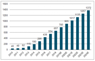 隨著干細(xì)胞技術(shù)的不斷發(fā)展成熟以及臨床推廣運(yùn)用,未來幾年全球干細(xì)胞醫(yī)療產(chǎn)業(yè)有望保持高速增長,預(yù)計2019年市場規(guī)模達(dá)到1249億美元,到2024年全球市場規(guī)模有望突破2000億美元。
