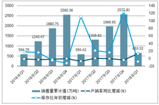 2016-2018Q1中國純堿(碳酸鈉)銷量統(tǒng)計