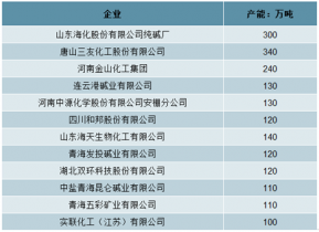 2019年我國主要企業(yè)純堿產(chǎn)能統(tǒng)計