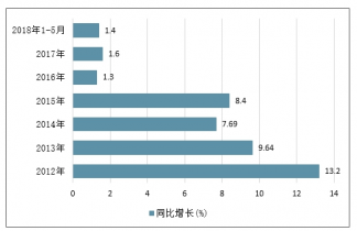 2012-2018年中國原鋁(電解鋁)產量同比增長