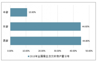 2018年全國蠶絲及交織物產(chǎn)量分布
