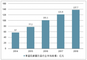 2014-2018年中國常溫乳酸菌飲品行業(yè)市場規(guī)模走勢