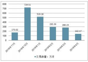 2018-2019年4月我國紙漿期貨分月度交易數(shù)量