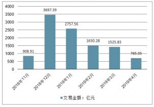 2018-2019年4月我國紙漿期貨分月度交交易金額