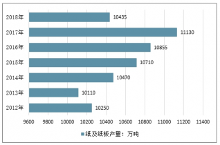 2012-2018年我國紙及紙板產(chǎn)量走勢