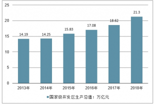 2013-2018年中國國家級開發(fā)區(qū)生產總值走勢