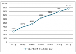 2011-2017年中國嵌入式軟件行業(yè)收入情況