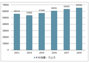 2013-2018年我國木材銷量情況