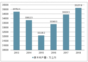2013-2018年我國原木產量走勢