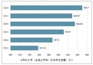 2013-2018年我國民辦大學(含獨立學院)在校學生數(shù)量走勢