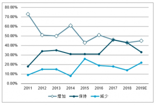 2011-2019 年廣告主對當(dāng)年營銷推廣費用占比的預(yù)期