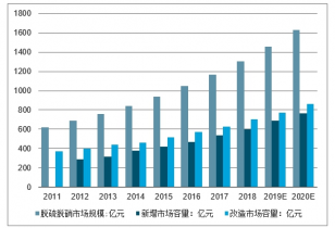 目前,煙氣除塵、脫硫、脫硝是大氣污染治理的三大業(yè)務(wù)板塊, 2015年,我國脫硫脫硝行業(yè)需求規(guī)模超過900億元,其中新增市場容量超過400億元,改造市場容量超過500億元,且隨著國家大氣污染法規(guī)標(biāo)準越來越嚴格,未來5-10年將是中國大氣污染治理的重點時期,市場容量將繼續(xù)保持在10%左右的增幅。