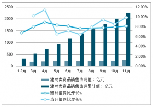 2019年1-11月建材類商品銷(xiāo)售及增長(zhǎng)走勢(shì)