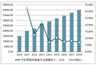 2010-2018年我國汽車零部件制造行業(yè)銷售收入及同比增長走勢